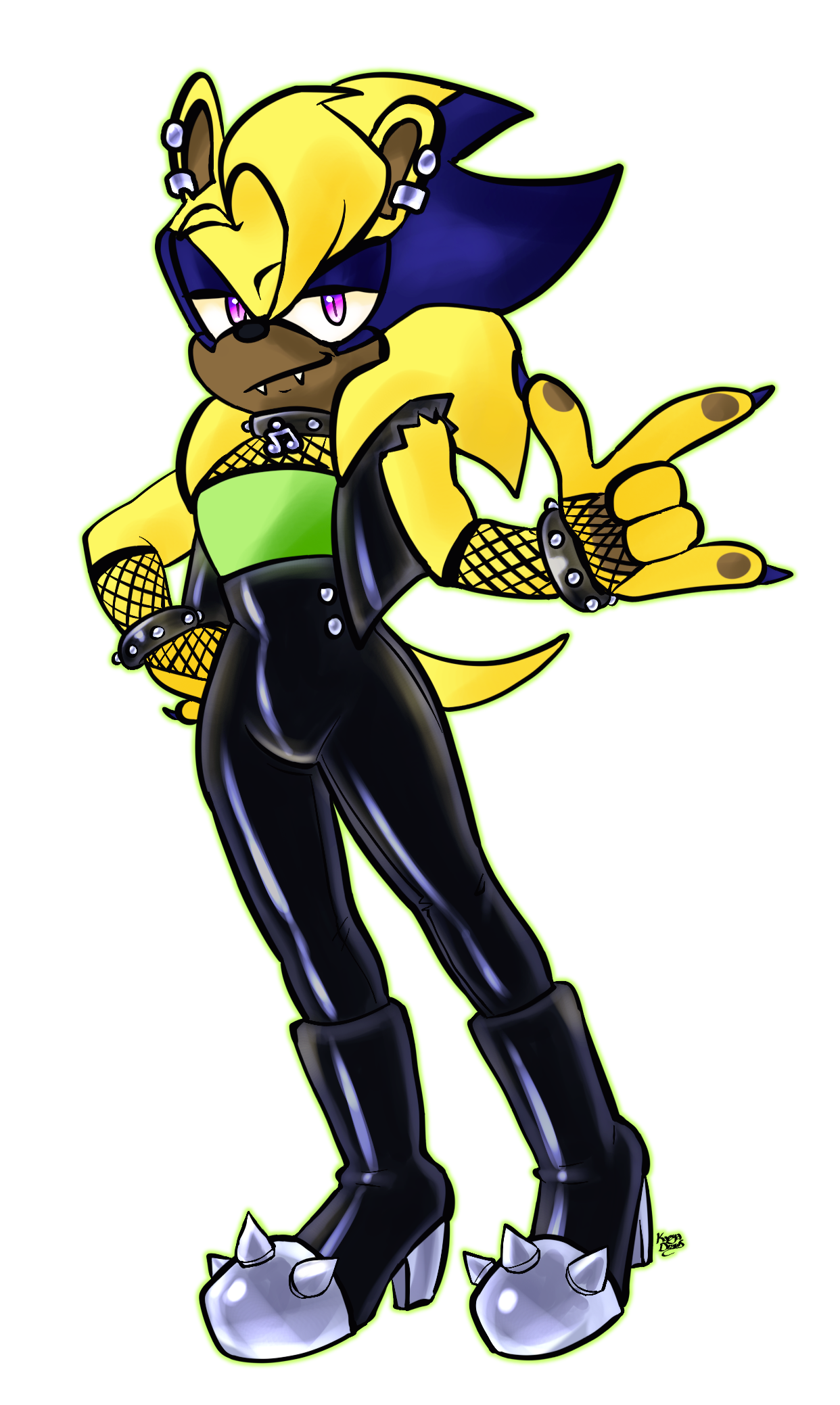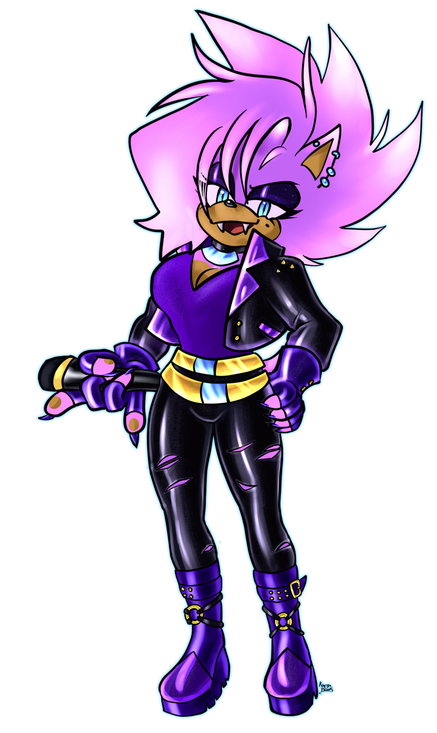 Age: 2538 | Gender: Female | Species: Hedgehog, Vampire | Preference: Pansexual | Build: Athletic | Voice Claim: Klergy, Rafscrap, CherryPersonality: Fiercely independent, confident, and a natural leader. Thrives on control and precision, with strong protective instincts toward family, coven, and band. Headstrong and decisive, but tempered by sharp intuition. Enjoys structure yet craves moments of spontaneity. Dry, cutting wit; perfectionism driven by past trauma and desire to protect.Quirks & Habits: Ritualistic grooming/instrument routines, hums or plays keyboard unconsciously, carries protective charms, organizes objects and schedules mentally.Interactions: Slade – anchor and calm counterbalance; Avarice – exasperated by his recklessness yet enjoys unpredictability; Carna – irritated but inspired by their chaos.Skills: Combat strategy & analysis, leadership & coordination, acrobatics & mobility, martial arts mastery, musical expertise (synth/piano, vocals), cooking & survival skills, tactical hypnosis.Abilities: Superhuman speed, agility, strength, and durability; enhanced senses; mild hypnosis & telepathy; immortality; super strength; vocal shockwave for combat and performance.Stage & Combat Style: Agile and precise combat using strength, martial arts, and vocal shockwaves. On stage, commanding presence, guides musical flow, complements Slade’s grounding and Avarice’s chaos. Can subtly harness vampiric energy for performance or defense.Weaknesses: Headstrong, overextends physically and emotionally, protective guilt, middle child pressures, blood/feeding vulnerabilities, sunlight/UV exposure, susceptible to stakes and beheading, predictable if over-reliant on speed.Story: Middle child of ancient vampire royal family; Slade’s twin, Avarice younger by a year. Trained in leadership, music, and combat. Protected coven during apocalypse with Avarice while Slade was distant. Guided surviving coven through portal to new world. Now in Scarlet Club, channeling leadership and creative genius into music, inspired by past trials and responsibility.